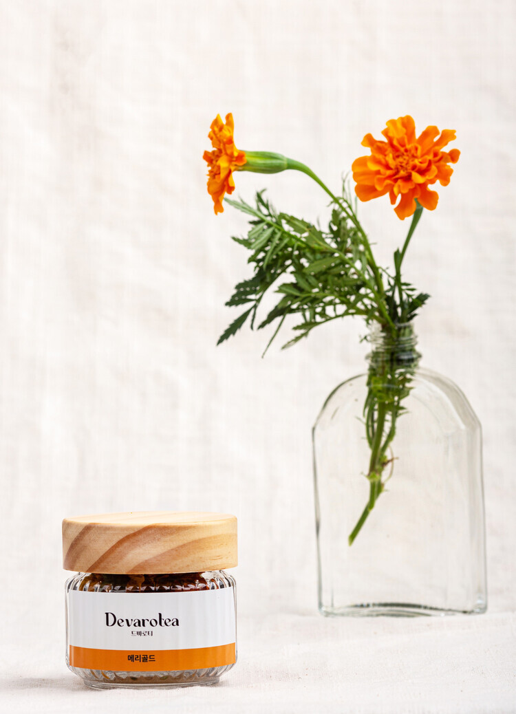 Bulk tea in premium wooden glass jars filled with whole blossoms